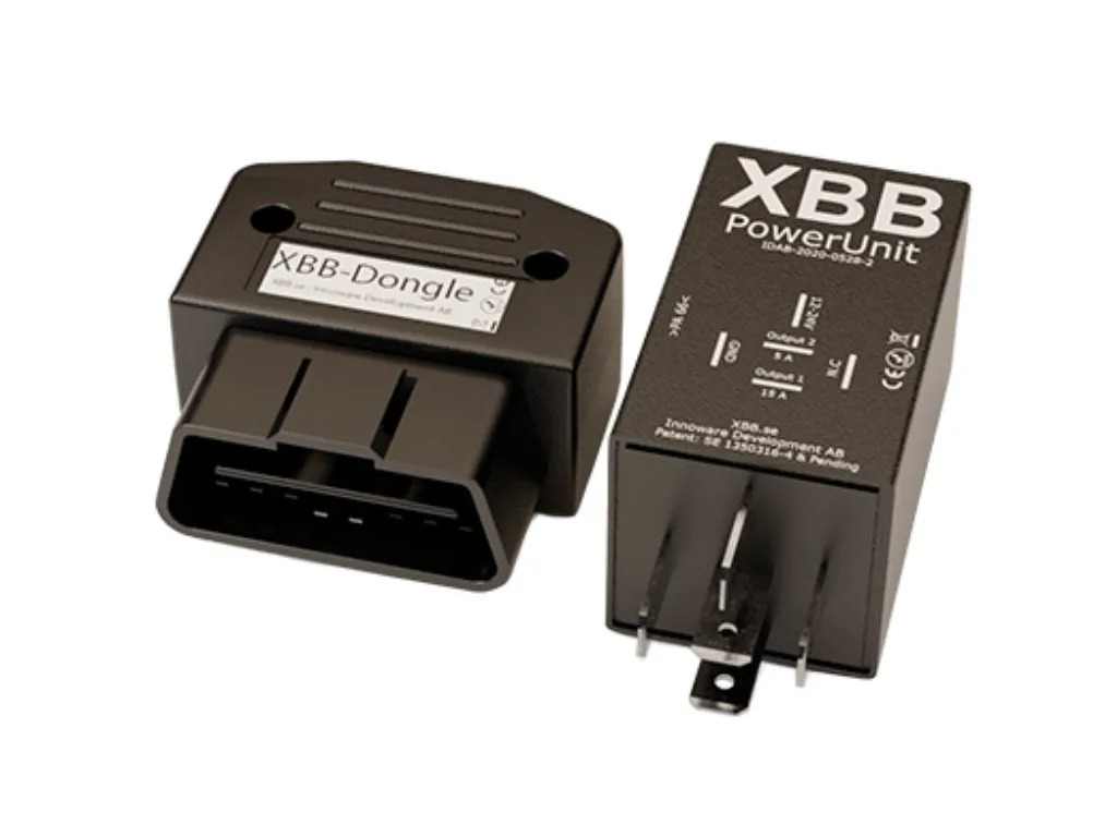 XBB Dongle on langaton OBD-pohjainen ohjausratkaisu lisävaloille ja lisälaitteille. Heräte saadaan CAN-väylästä ja välitetään langattomasti Power Unit -releelle. Nopea asennus, ei johtovetoja ohjaamon ja konehuoneen välillä. Konfigurointi XBB-sovelluksella (Android & iOS).